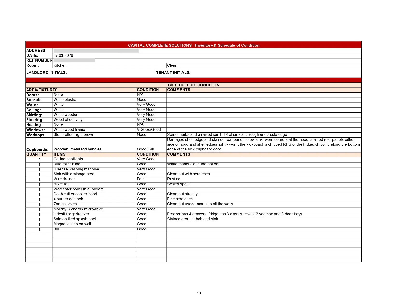 An example inventory report showing our detailed schedule of condition — room-by-room documentation of a property at the start of a tenancy.