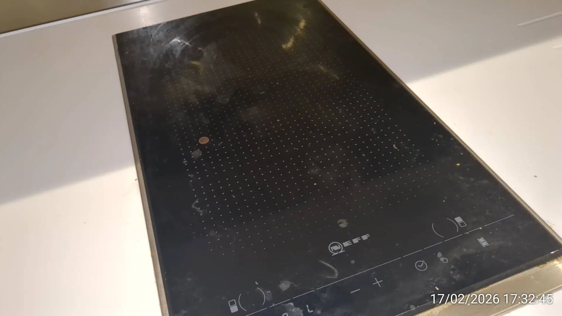 Neff induction hob documented during a check-out inspection, noting surface marks and residue.