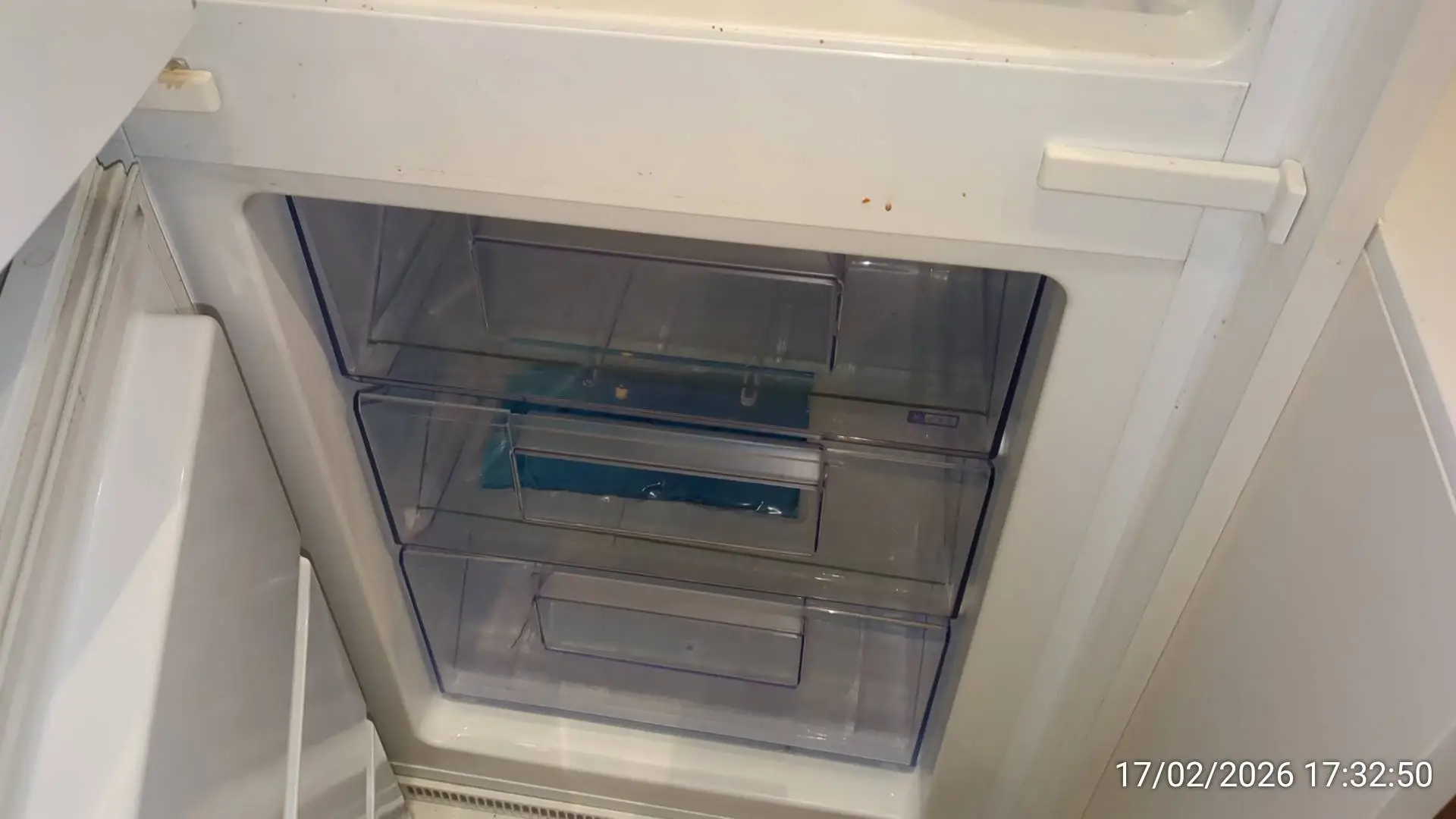 Freezer drawers and compartments inspected and photographed as part of the kitchen check-out documentation.