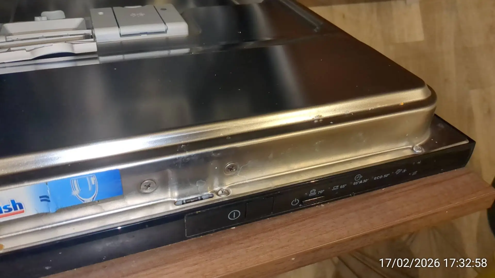 Integrated dishwasher exterior documented during check-out inspection, noting marks on the front panel.