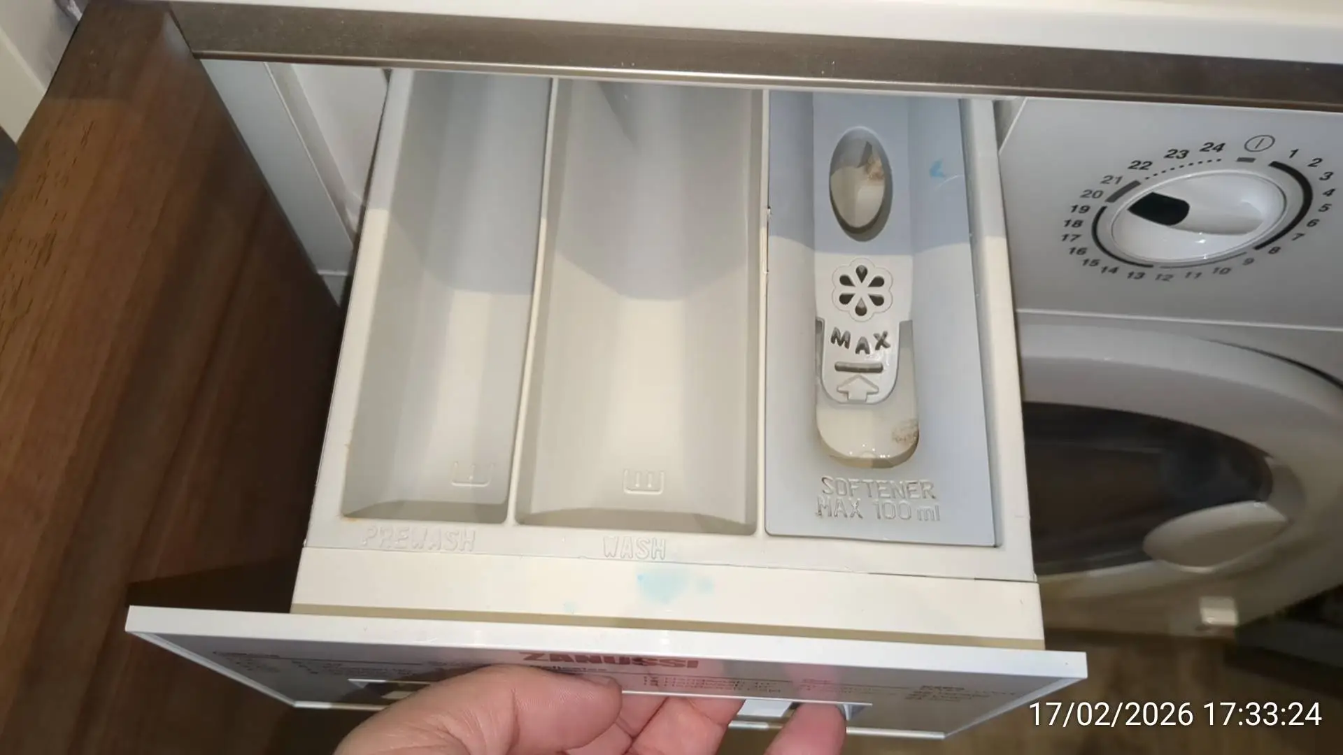 Zanussi washing machine detergent drawer inspected during check-out — documenting condition of appliance components.