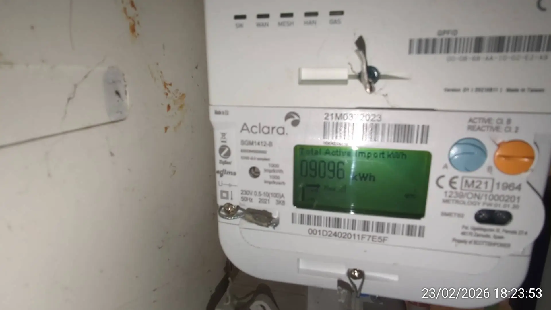 Electricity meter (Aclara SMETS 2) reading recorded during a property inspection — meter readings are documented at every check-in and check-out.